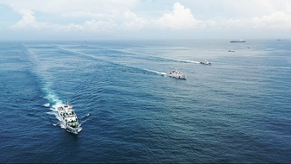 圖為海警艦艇編隊(duì)在轄區(qū)海域巡邏。中國海警局供圖
