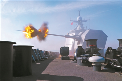 “射擊!”編隊指揮員一聲令下,各艦主炮相繼對來襲“敵”目標(biāo)實施火力打擊。一時間,海面炮聲隆隆,硝煙彌漫。