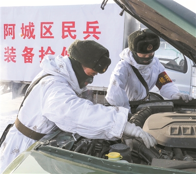 數(shù)九隆冬,天寒地凍。1月上旬,黑龍江省軍區(qū)采取“三級聯(lián)動、異地同步”方法,組織省軍區(qū)機關(guān)、軍分區(qū)(警備區(qū))、人武部同步開展國防動員演練,錘煉嚴寒條件下應急應戰(zhàn)本領(lǐng)。