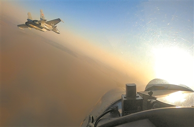 “雷達截獲!”擔負攻擊任務的紅方戰(zhàn)機搶先截獲目標,并利用藍方隊形破綻尋找攻擊機會。搜索、發(fā)現(xiàn)、機動、擺脫……從中距到近距,從高空到低空,雙方鏖戰(zhàn)難解難分。