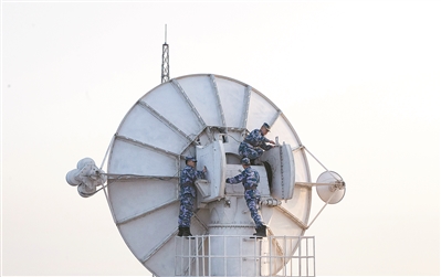 抵達(dá)山頂后,一場(chǎng)測(cè)控訓(xùn)練緊張展開,各種口令聲響徹海天,官兵斗志昂揚(yáng)、全心投入。
