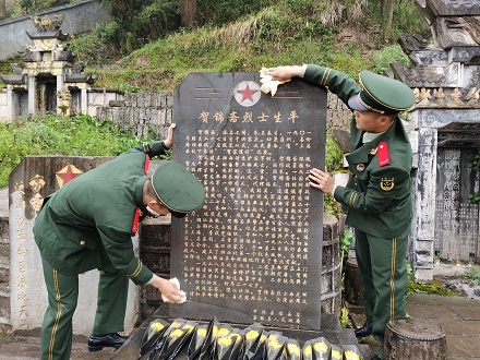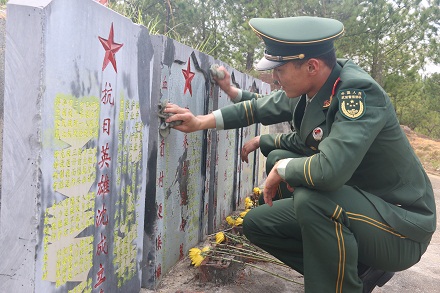 清明將至,當(dāng)武警湖南總隊(duì)邵陽支隊(duì)城步中隊(duì)官兵再次來到這里,欣喜地看到,烈士紀(jì)念碑廣場(chǎng)前坪干凈整潔,紀(jì)念碑碑文已重新描漆。