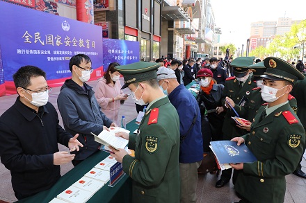 4月14日,武警北京總隊執(zhí)勤第二支隊在北京開展了形式多樣的“全民國家安全教育日”活動。