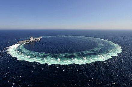 山東艦進(jìn)行大舵角試驗。李剛 攝