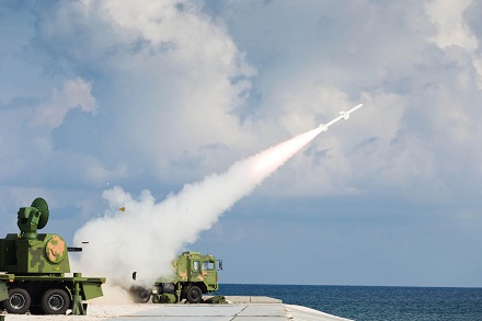海口艦發(fā)射對空導(dǎo)彈攔截目標(biāo)。李章龍 攝