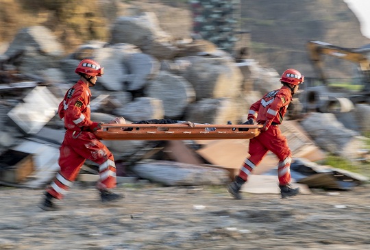 圖為救援分隊官兵火速轉(zhuǎn)移受傷群眾。