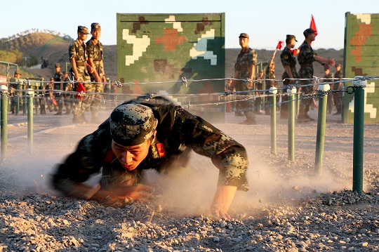 比武競賽中特戰(zhàn)隊(duì)員通過400米障礙。彭安田 攝