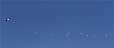 7時10分,飛機(jī)抵達(dá)預(yù)定空域?!半x機(jī)準(zhǔn)備,跳!”隨著投放員下達(dá)口令,官兵們魚貫而出。轉(zhuǎn)瞬之間,朵朵傘花在高空競相綻放。安全著陸后,特戰(zhàn)隊員迅速集結(jié),按照預(yù)定編組向“敵”前沿隱蔽突防。