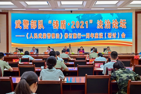 6月10日,武警部隊“鑄盾·2021”法治論壇在武警警官學院舉辦,主題為“人民武裝警察法修訂施行一周年座談(研討)”。論壇主要圍繞人民武裝警察法的理論研究、實踐應用和教育教學問題展開研討交流,并匯編形成近20萬字的理論研究成果《“鑄盾·2021”法治論壇交流研討論文匯編》。