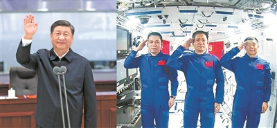 習(xí)近平:看到你們狀態(tài)很好、工作順利,大家都很高興。建造空間站,是中國(guó)航天事業(yè)的重要里程碑,將為人類和平利用太空作出開(kāi)拓性貢獻(xiàn)。你們是新時(shí)代中國(guó)航天事業(yè)無(wú)數(shù)奮斗者、攀登者的代表。希望你們密切配合,圓滿完成后續(xù)任務(wù)!祝你們?cè)谔展ぷ魃铐樌?,我們?cè)诒本┑群蚋魑粍P旋!