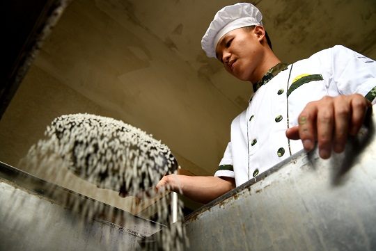 “特戰(zhàn)夢是我的初心,干不了特戰(zhàn)也要為特戰(zhàn)出把力,哪怕是干后勤我也愿意。”經(jīng)過反復思想斗爭,王子浩主動向組織提出到炊事崗位。