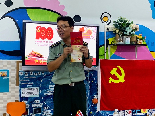 本報(bào)訊 通訊員鄭刃 七一前夕,??谲娛路ㄔ簯?yīng)邀到武警海南總隊(duì)幼兒園開展“童心向黨、陽(yáng)光成長(zhǎng)”黨史教育主題活動(dòng)。