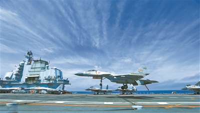 2018年4月12日,遼寧艦航母編隊參加南海大閱兵之后,隨即奔赴遠海,開展實兵對抗演練。圖為演練中殲-15艦載戰(zhàn)斗機放下尾鉤準備著艦。本報記者 張雷 攝