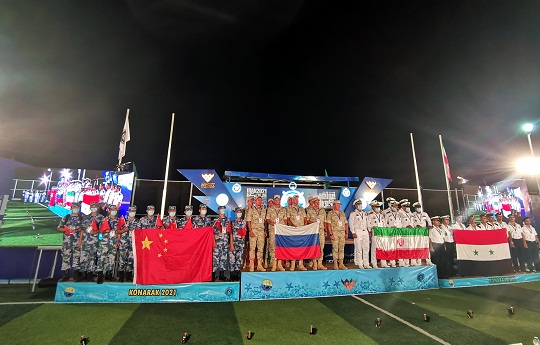 本報伊朗恰赫巴哈爾9月1日電 通訊員肖勇利 于純浩 周雪偉 當地時間8月31日21時許,“國際軍事比賽—2021”“深?!表椖吭谝晾士萍{拉克海軍基地舉行閉幕式,賽事組委會宣布俄羅斯與伊朗參賽隊并列第一名,中國參賽隊、敘利亞參賽隊分獲二、三名,并現場頒發(fā)了獎牌。