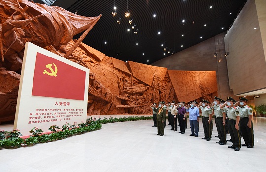 圖為武警合肥支隊官兵與參戰(zhàn)老兵一起重溫入黨誓詞。徐偉 攝
