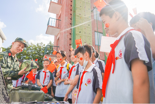 在營區(qū)“靶場”,各式槍械裝備整齊地擺在展示臺上。在教官帶領(lǐng)下,學(xué)生們很快掌握了武器使用基本原理和不同武器的使用效果和應(yīng)用場景?;顒幼詈?,學(xué)生和官兵們揮舞著國旗,大聲齊唱《我和我的祖國》。