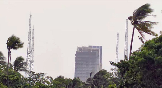 據(jù)悉,早在臺(tái)風(fēng)“獅子山”來(lái)臨前,發(fā)射場(chǎng)科技人員就開(kāi)展專(zhuān)題討論,制定應(yīng)急預(yù)案,組織各系統(tǒng)崗位落實(shí)設(shè)備設(shè)施防臺(tái)風(fēng)措施,對(duì)室外設(shè)備進(jìn)行加固,加班加點(diǎn),提前完成了發(fā)射塔架回轉(zhuǎn)平臺(tái)打開(kāi)、長(zhǎng)征七號(hào)活動(dòng)平臺(tái)進(jìn)入垂直總裝測(cè)試廠房避風(fēng)等大項(xiàng)工作,有效保證了臺(tái)風(fēng)期間發(fā)射塔架和活動(dòng)平臺(tái)的安全。