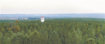 張連?。ㄗ笠唬┰诓t望塔上觀察森林防火情況。