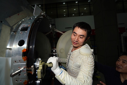 按計劃,翟志剛出艙后將先進行空間科學實驗取樣,把一個固定在飛船艙外的實驗樣品送回艙內(nèi),然后,再從艙內(nèi)取出一面五星紅旗,進行太空漫步和艙外展示。