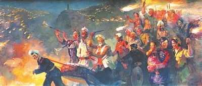 油畫《延安火炬》由我國當代著名油畫家蔡亮創(chuàng)作,表現(xiàn)的是1945年抗戰(zhàn)勝利后,延安軍民舉行火炬游行、歡慶勝利的情景。