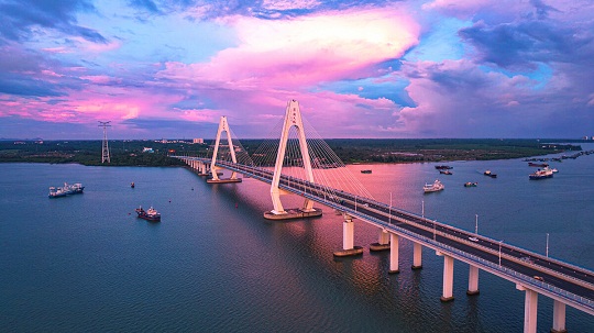 2012年12月,清瀾大橋正式通車,橋身跨越八門灣,東郊椰林美景盡收眼底。沿著清瀾大橋而下,一條寬闊的4車道瀝青公路直通文昌航天發(fā)射場。驅(qū)車沿著航天大道慢行,可見航天科普中心、好圣航天科技小康村,以及一個個高檔旅游項目,猶如一顆顆耀眼的珍珠,散落在美麗的文昌大地上。