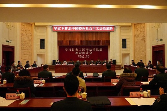 圖為國防大學政治學院西安校區(qū)召開學習貫徹習近平法治思想理論座談會。冉慶 攝
