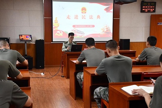 警通勤務連正在進行一場普法宣講,一堂課下來,戰(zhàn)士小李深有感觸地說:“家里的難題沒了,自己的心結(jié)也打開了。”此次的宣講“專家”,是西安校區(qū)2019級碩士研究生小齊。