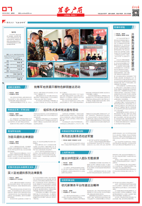 近日,解放軍沈陽軍事法院聯(lián)合遼寧省高級(jí)人民法院,在駐遼部隊(duì)開展憲法宣傳周活動(dòng)。