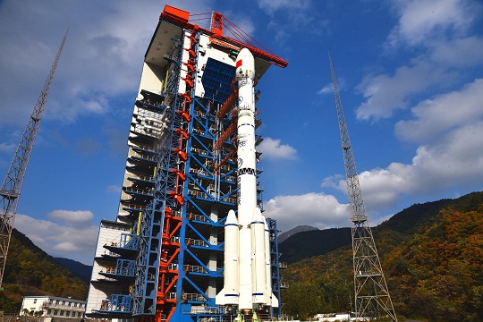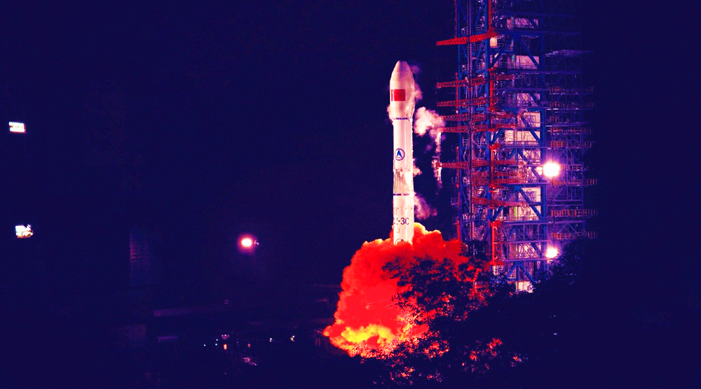 圖為本次任務中長三乙火箭托舉天鏈二號02星劍指蒼穹。