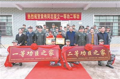 “袁偉真厲害啊,一年兩次立功!”“袁偉這么優(yōu)秀,我也想把兒子送到部隊(duì)去鍛煉鍛煉?!笨粗?duì)伍前方“一等功臣之家”和“二等功臣之家”兩塊熠熠生輝的牌匾,聞?dòng)嵹s來(lái)的鄉(xiāng)親羨慕之情溢于言表。