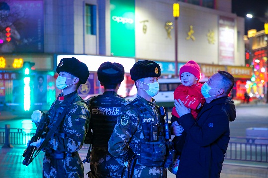 春節(jié)期間,為確保駐地安全穩(wěn)定,武警甘肅總隊酒泉支隊嚴(yán)密組織城市武裝聯(lián)勤巡邏,在各大街道、火車站、高鐵站、廣場等重要場所守護(hù)人民群眾安全,確保市民度過一個祥和喜慶的春節(jié)假期。