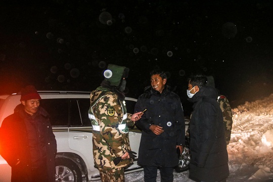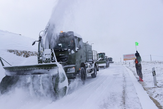 因災害現(xiàn)場地處平均海拔4000多米以上海拔,持續(xù)降雪不斷,加之氣溫低至零下20多攝氏度,給整個道路搶通工作帶來了不少難度。為盡快清理路面積雪搶通道路,武警官兵采取“人歇機不停、分段搶通、先通后拓”的方法進行全力搶通,克服了高寒缺氧及紫外線強烈等重重困難。