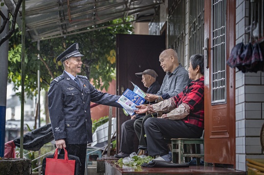 圖為于伍生向社區(qū)居民宣傳規(guī)章制度。劉德安 攝