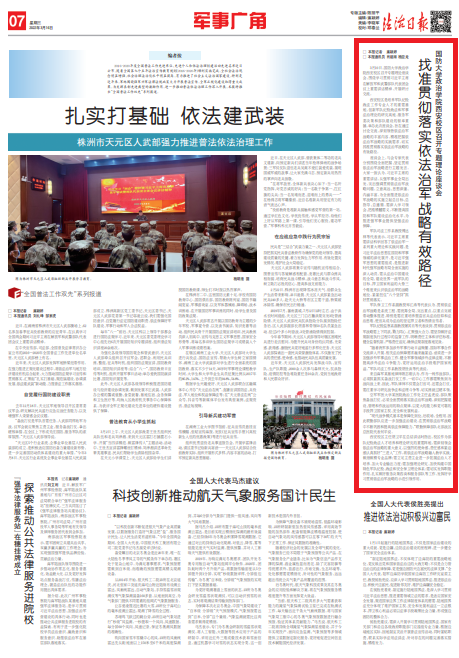 “隨著我軍參加涉外軍事行動日益頻繁,國際軍事合作交流深入開展,相關法治保障需求越來越緊迫,亟須進一步加強涉外軍事法治工作,健全軍事領域涉外法律法規(guī),不斷提高涉外法治斗爭能力,更好運用法治手段維護國家利益。”軍隊司法工作系教授胡世洪等代表說。