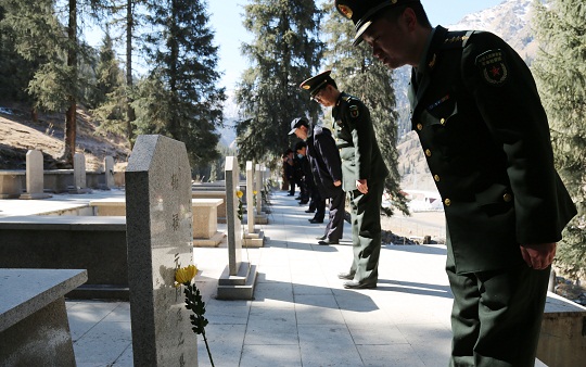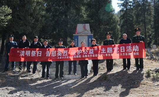清明時節(jié),解放軍烏魯木齊軍事檢察院聯(lián)合新疆維吾爾自治區(qū)烏魯木齊縣人民檢察院檢察官,來到天山后峽216國道旁一處零散烈士墓,開展“清明祭掃、告慰英烈、保護(hù)公益”主題黨日活動。