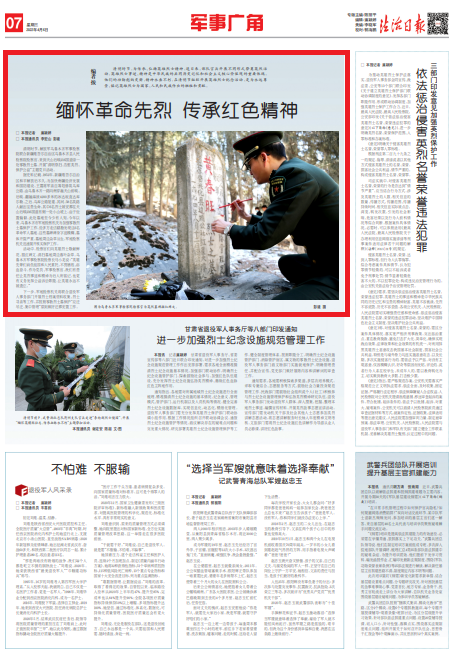 清明時節(jié),為傳承、弘揚英雄烈士精神,連日來,部隊官兵開展不同形式祭奠英烈活動。英雄烈士事跡、精神是中華民族的共同歷史記憶和社會主義核心價值觀的重要體現(xiàn),他們的功勛彪炳史冊,精神永垂不朽。在清明節(jié)組織開展英雄烈士紀(jì)念活動,是為永遠(yuǎn)尊崇、銘記英雄烈士為國家、人民和民族作出的犧牲和貢獻(xiàn)。
