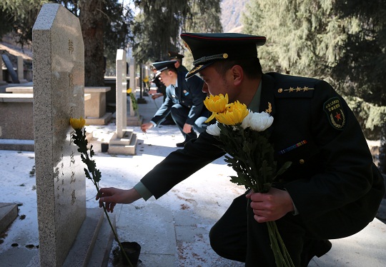 活動中,檢察官們向英雄烈士敬獻(xiàn)鮮花,描紅碑文,清掃墓地周邊落葉雜草。烏魯木齊軍事檢察院檢察長馬小龍說:“英雄先輩們肩負(fù)祖國和人民重托,不畏犧牲、浴血奮斗。作為黨員、軍事檢察官,我們有責(zé)任讓英烈事跡和精神為后人所銘記,也更有義務(wù)發(fā)揮公益訴訟職能,讓英雄永遠(yuǎn)不被遺忘”。