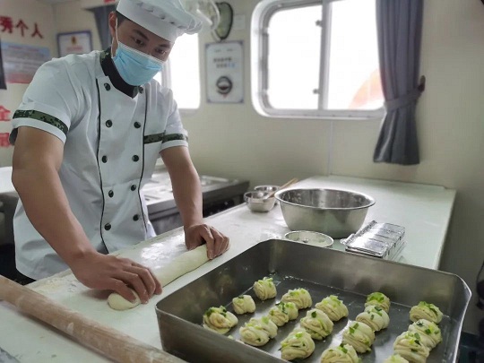“青年興則國(guó)家興,青年強(qiáng)則國(guó)家強(qiáng)?!睋?dān)任炊事員,廚房就是我的主場(chǎng),灶臺(tái)就是我的舞臺(tái),我始終把干好本職作為工作的出發(fā)點(diǎn),把讓大家滿意作為工作的落腳點(diǎn),做到干一行,愛一行,鉆一行,精一行,努力把飯菜做好,提高船艇伙食質(zhì)量,讓同志們吃出健康,吃出戰(zhàn)斗力。