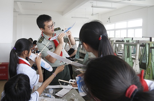 圖為2018年某部官兵深入結(jié)對(duì)學(xué)校為孩子們講授航模知識(shí)。張俊睿 攝