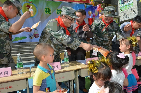 圖為2014年某部官兵前往結(jié)對(duì)小學(xué)與孩子們共度六一,給孩子們頒發(fā)獎(jiǎng)狀,見證他們的成長(zhǎng)與喜悅。張鵬程 攝