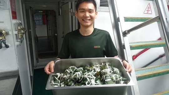 吃完粽子,執(zhí)法員們齊坐在甲板上,開始了一場別開生面的甲板晚會。每個人都放下白天的疲憊,感受著節(jié)日的愜意。短暫休息過后,執(zhí)法員們將迎來新一輪夜航巡邏任務。