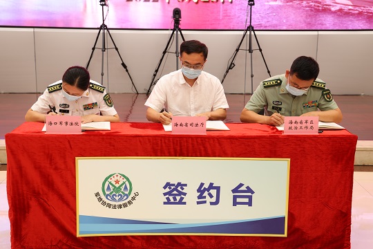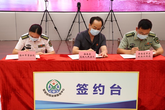 本報???月28日電 記者陳麗平 通訊員張凱 今天,海南省高級人民法院、省司法廳、省軍區(qū)政治工作局,以及解放軍??谲娛路ㄔ号e行海南軍地協(xié)同法律服務中心揭牌及簽約儀式。