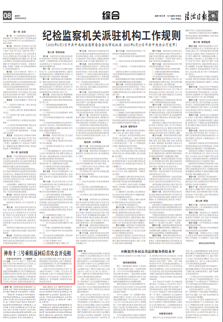 從2021年10月16日到2022年4月16日,在為期半年的神舟十三號(hào)載人飛行任務(wù)中,航天員翟志剛、王亞平、葉光富創(chuàng)造中國(guó)航天員連續(xù)在軌飛行時(shí)長(zhǎng)新紀(jì)錄,以“感覺(jué)良好”狀態(tài)順利完成一系列創(chuàng)新性、突破性科學(xué)試驗(yàn)和空間應(yīng)用任務(wù)。