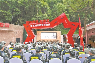筆者走下景區(qū)“強(qiáng)軍號(hào)”小火車(chē),一座紅色五角星形狀的“國(guó)防門(mén)”便映入眼簾,門(mén)上“愛(ài)我國(guó)防愛(ài)我家”7個(gè)大字引人注目。門(mén)內(nèi)的國(guó)防教育體驗(yàn)園,是景區(qū)里一處別樣的風(fēng)景,也是近期熱度飆升的新晉熱門(mén)“打卡地”。據(jù)統(tǒng)計(jì),85%的游客主動(dòng)進(jìn)園體驗(yàn)。