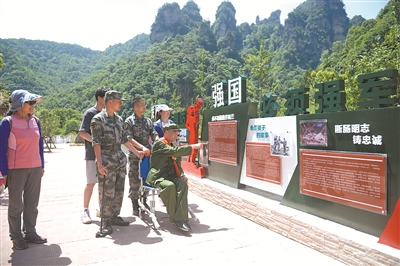 將國(guó)防元素融入張家界5A級(jí)核心景區(qū),是張家界軍地依托景區(qū)資源優(yōu)勢(shì),做活紅色文章、抓好紅色教育、拓展紅色陣地,推進(jìn)國(guó)防教育走深走實(shí)的一個(gè)有力舉措。張家界軍分區(qū)司令員郭鈺告訴筆者,在進(jìn)一步規(guī)劃開(kāi)發(fā)5A級(jí)核心景區(qū)時(shí),軍地達(dá)成共識(shí):統(tǒng)籌“綠+紅”旅游資源開(kāi)發(fā),規(guī)劃景區(qū)國(guó)防教育路線圖,實(shí)現(xiàn)生態(tài)資源與紅色資源有機(jī)融合。