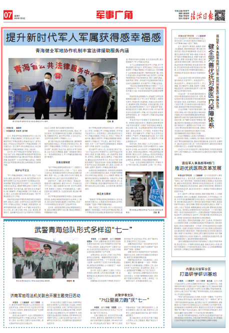 青海軍地各級涉軍維權(quán)機構(gòu)堅持把弘揚愛國擁軍,營造關(guān)心國防、支持軍隊的社會氛圍作為維護(hù)軍人軍屬合法權(quán)益工作基礎(chǔ)工程抓緊抓好。統(tǒng)籌軍地教育資源,組建“1+8+N”藏漢雙語宣傳文化小分隊,深入重點寺院、學(xué)校、企業(yè)、敬老院、聯(lián)建村莊,赴涉藏州縣宣講習(xí)近平新時代中國特色社會主義思想,強化各族群眾國防觀念。