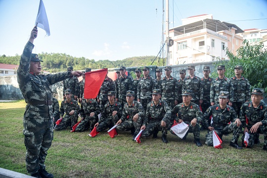圖為教員對(duì)旗語進(jìn)行教學(xué)。