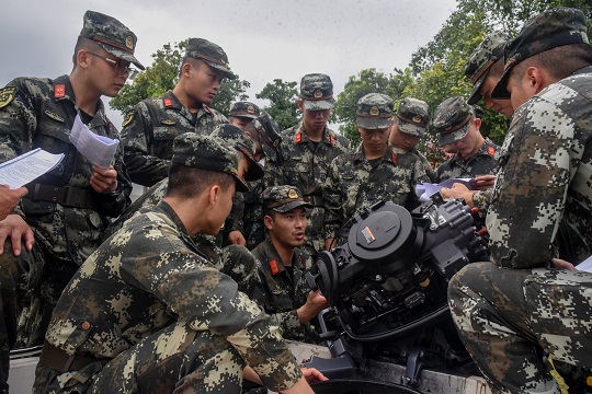 圖為官兵進(jìn)行水上航行訓(xùn)練。
