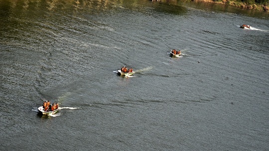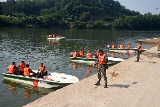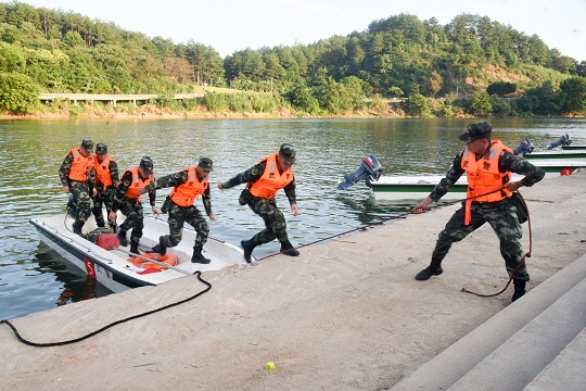針對(duì)駐地雨季歷時(shí)較長(zhǎng)、降雨量偏多,可能出現(xiàn)持續(xù)性暴雨過程,防汛形勢(shì)較為嚴(yán)峻的情況,此次集訓(xùn)把環(huán)境設(shè)險(xiǎn),把情況設(shè)全,把練技術(shù)、練心理與練作風(fēng)結(jié)合起來,按照理論講解與實(shí)際操作相結(jié)合、考核評(píng)比與綜合訓(xùn)練相結(jié)合的方法,對(duì)沖鋒舟機(jī)械理論、舷外機(jī)的安裝與啟動(dòng)、故障排除、船艇直行、S型航行、水上營救等內(nèi)容進(jìn)行強(qiáng)化訓(xùn)練。