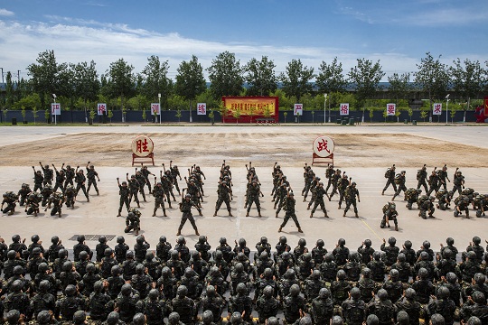 京郊,驕陽似火?!?名‘不法分子’向某高地逃竄,現(xiàn)命令你部迅速處置?!敝笓]員一聲令下,無人機(jī)即刻升空,精準(zhǔn)鎖定目標(biāo),戰(zhàn)斗小組交替掩護(hù)逼近。“突擊!”隨著一陣槍響,“不法分子”應(yīng)聲而倒。